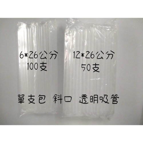 品名: 單支包 斜口 透明吸管 6mm*26公分