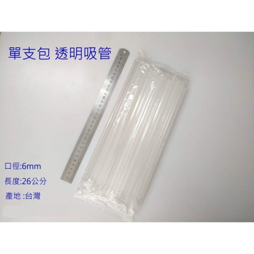 品名: 單支包 斜口 透明吸管 6mm*26公分