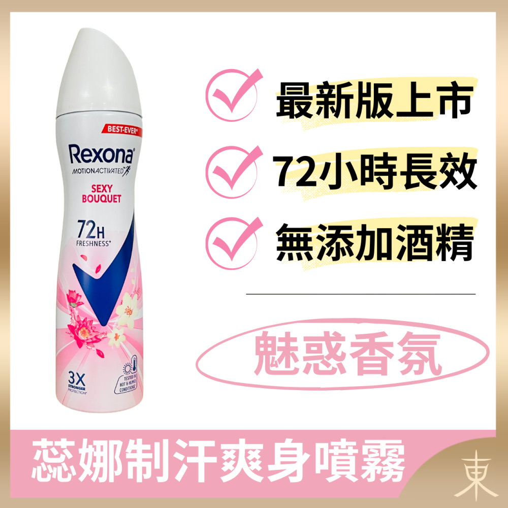 【蕊娜正品附發票】【魅惑香氛】【優雅花香調】【Rexona 制汗爽身噴霧】【72hr長效制汗】