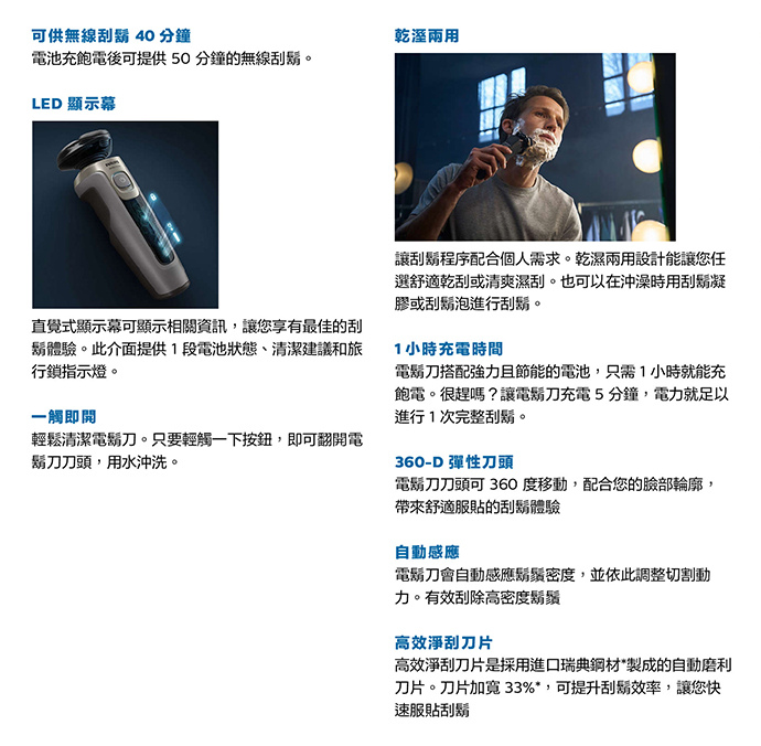 ◎ 運作時間:40分鐘/刮鬍13次