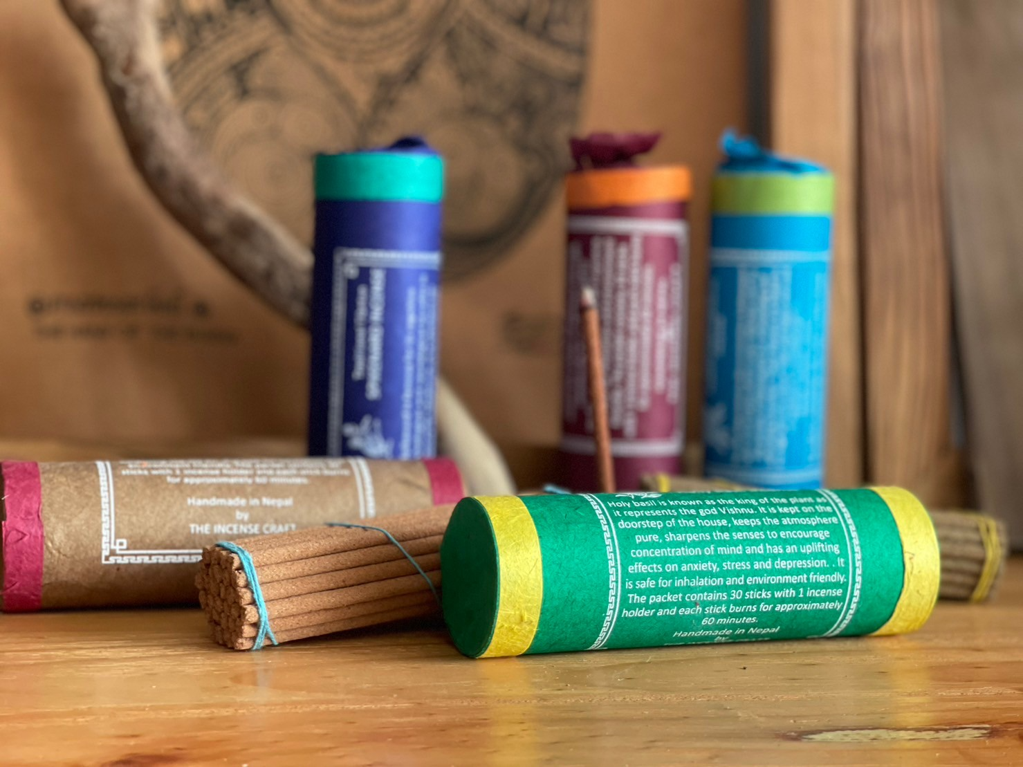 商品:尼泊爾手工草本植物線香(附木製小香座)
