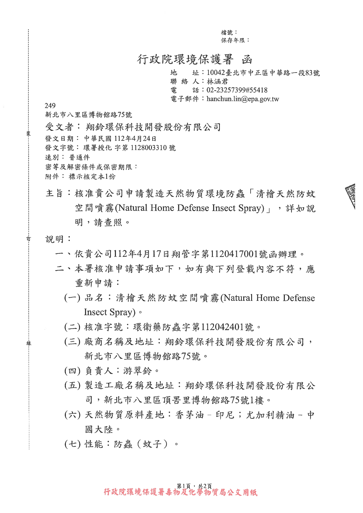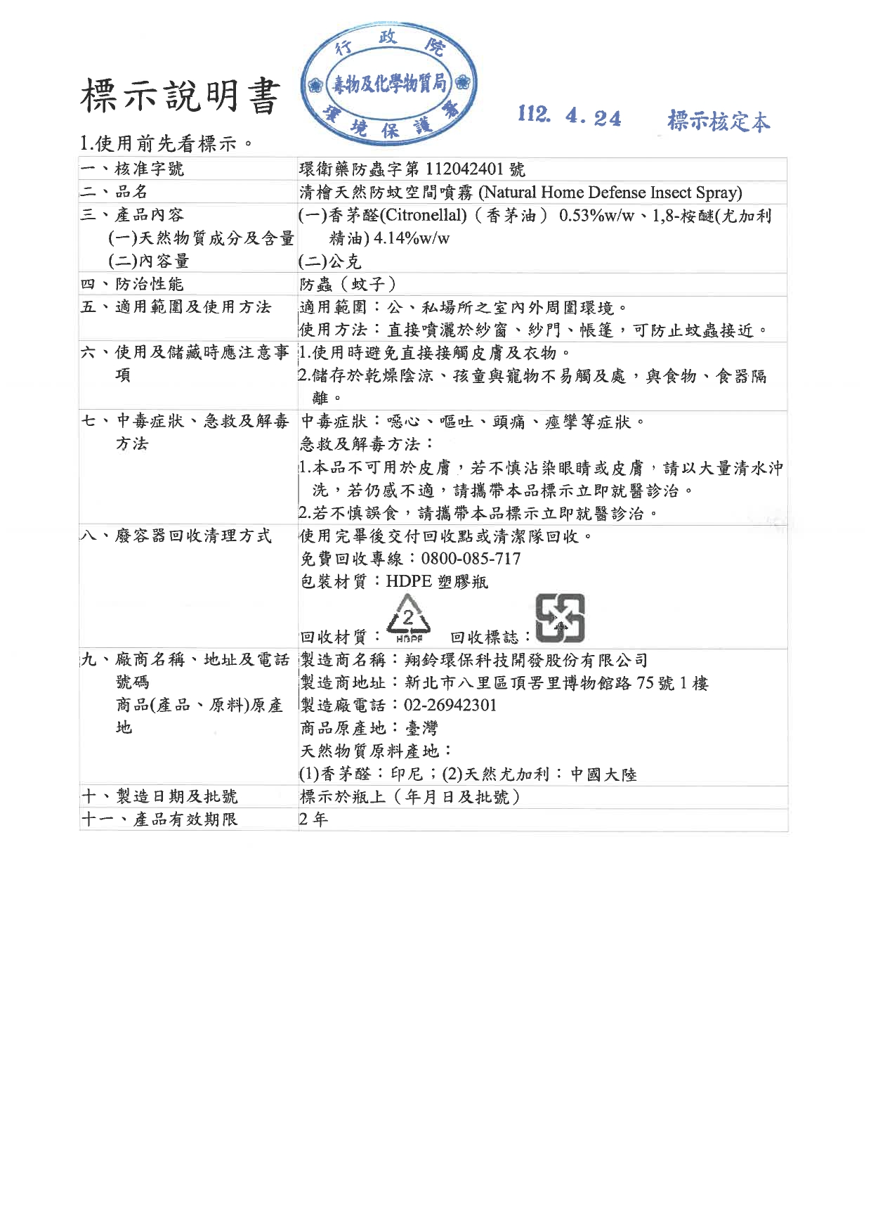 環境用藥許可證字號:環衛藥防蟲字第112042401號