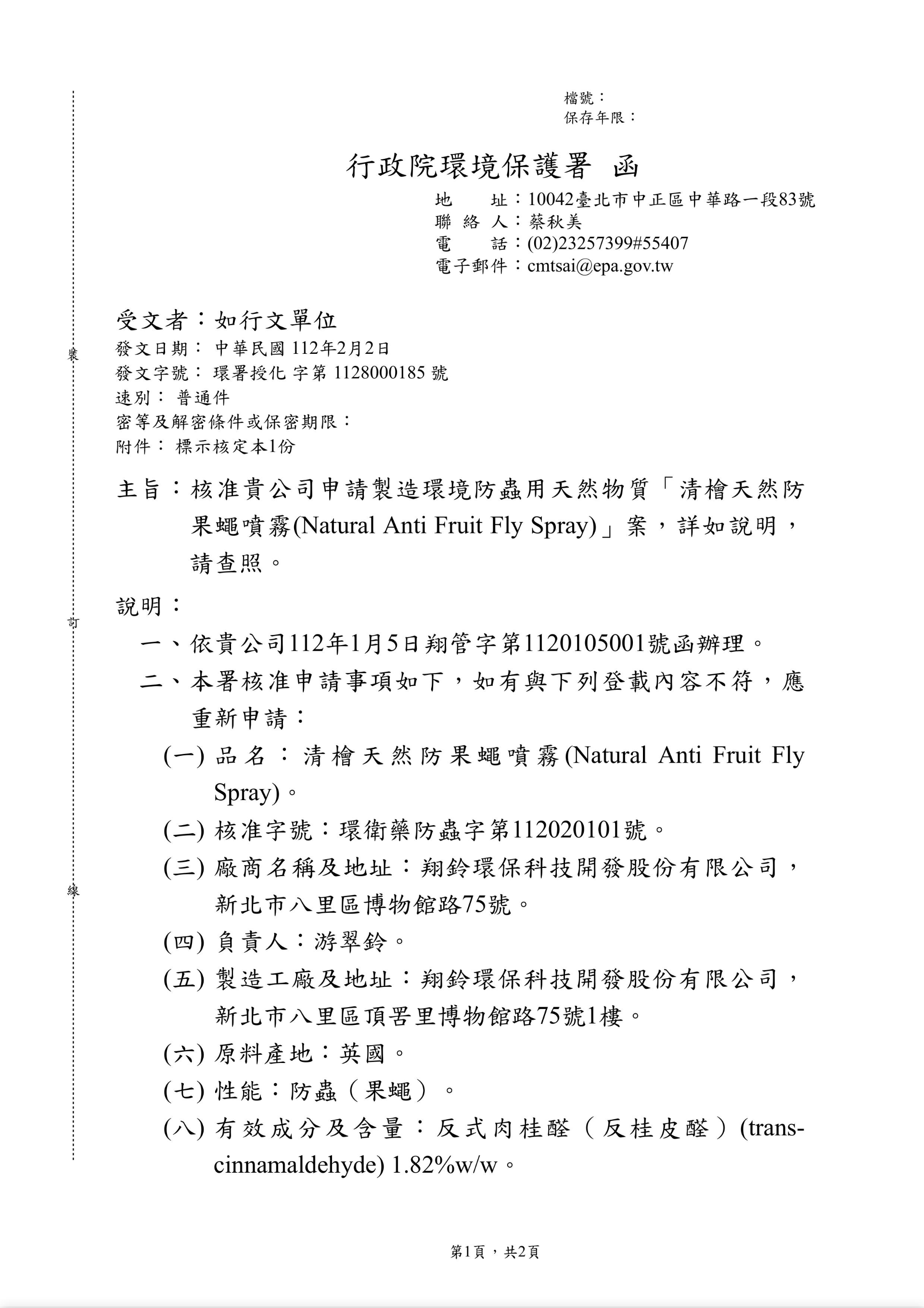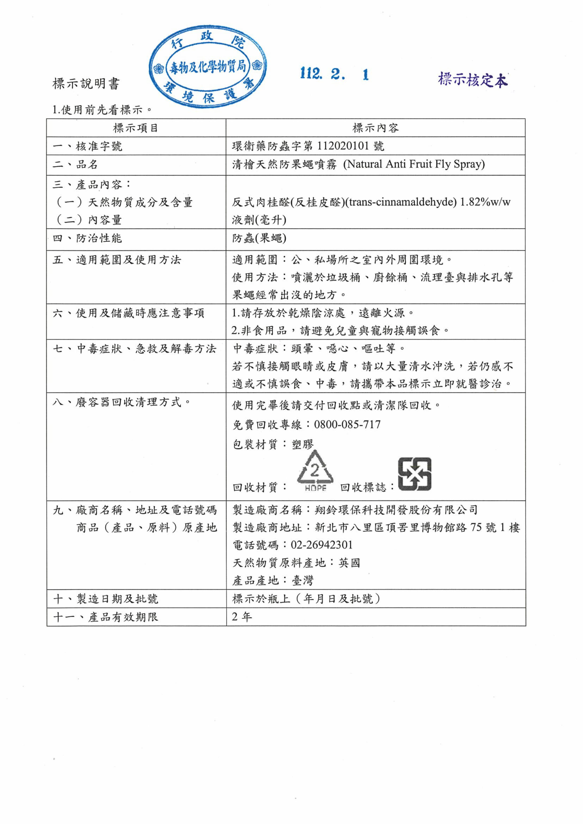 ★環衛藥防蟲字第112020101號-環保署核可的天然肉桂與多種植萃配方,通過第三公正單位檢測。