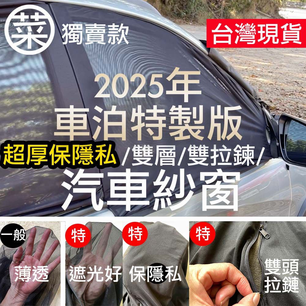 【材質】 超厚汽車雙層拉鍊紗窗:高彈網紗 隱私布:牛津布 、塗銀布