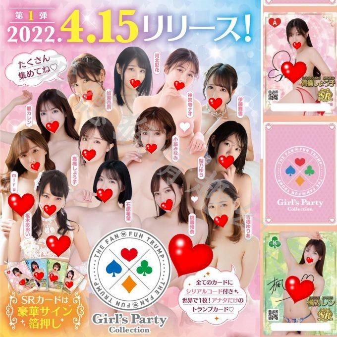 《Girl’s Party Collection – THE FAN♡FUN TRUMP AV女優收藏卡》 性感女優大集合❤️有趣的撲克牌收集 隆重推出!日本 AV 女優 Girl's Party Fan Fun Trump 撲克牌,包括最受歡迎的性感女優!快點來收集她們吧! 第一彈推出 SR52型、R104型、N156 型共 312 種。SR 有一個華麗的蓋章簽名! 卡片全息圖根據稀有度而變化,每張撲克牌卡片都刻有一個序列號,讓它成為世界上唯一您擁有的卡片! FAN♡FUN TRUMP 不僅是一款收藏卡片,還可以用作普通撲克牌,遊玩各種紙牌遊戲。 共13位人氣女優,穿上穿情趣內衣拍攝! 女優陣容:高橋聖子、小島南、楓可憐、神宮寺奈緒、石原希望、桃園怜奈、河北彩花 miru、架乃由羅、伊藤舞雪、加美杏奈、吉根柚莉愛、樞木葵   卡片總共312張,為13位女優平均分配,1位女優有24款。 全部卡片以隨機方式出售,快來收集所有卡片組成最強牌組吧! ※每張卡片上都有獨立QR code,日本官方之後會舉辦抽獎活動。   日本 AV 女優 Girls Party Fan Fun Trump 撲克牌 一包三張 • 1 包隨機包含 3 張撲克牌 • 尺寸:6.3×8.8cm • 圓角半徑 0.2cm • SR:全表面全息PP(HL-TE1)+標牌燙金 • R:全表面全息PP(HL-63) • N:全表面光澤PP 商品規格   材質:紙 規格:一包3張 / 卡片樣式隨機 重量:7g 尺寸:6.3×8.8cm,圓角半徑0.2cm 外盒尺寸:13.8×7×0.3cm(袋裝) 生產商:TIS CO.,LTD 產地:日本