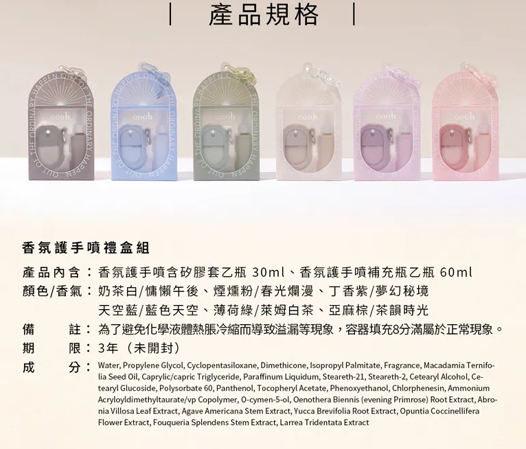 【oooh】護手噴禮盒 六色 慵懶午後 春光爛漫 夢幻秘境 藍色天空 萊姆白茶 茶韻時光 護手霜 交換禮物 生日禮物