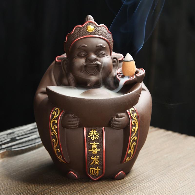 大號陶瓷紫砂財神倒流香爐香薰爐家居送禮香爐創意擺件