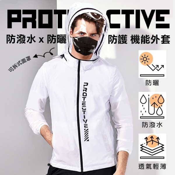 ◎可拆面罩機能防護衣,防曬、防雨、防灰塵