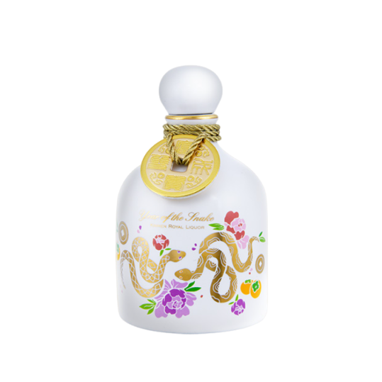 限量生肖系列─乙巳蛇年(富貴成雙),以雙蛇環繞,蛇身排列數字8姿態,88代表發,雙蛇、牡丹花、錢幣、柿子等圖騰,引申有富貴、如意的吉兆。