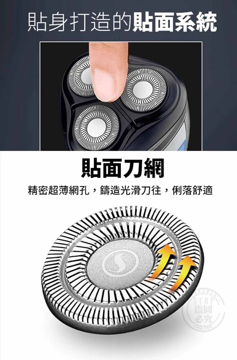 * 充電式自動刮鬍刀,六葉刀片X3頭