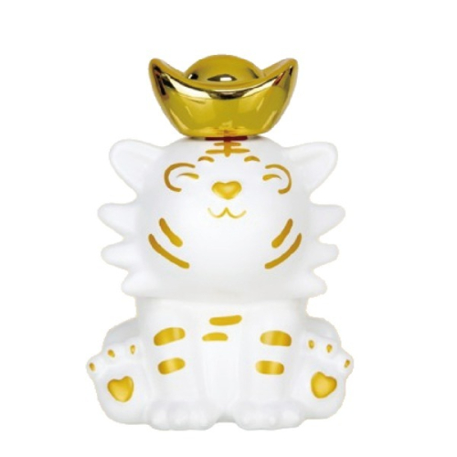 以可愛圓滿的小虎造型並頭頂元寶,象徵生豐進財,事事都如意,虎年添虎翼。