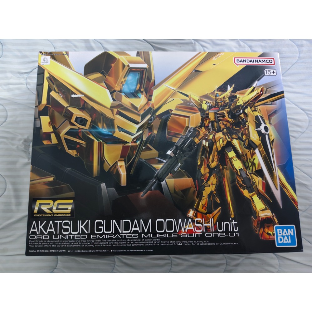 「RG 1/144 曉鋼彈(大鷲裝備)」將精密造型、分件分色融入 1/144 比例中,全機更具備三種不同色調的金色電鍍外裝甲零件,並藉由多面形狀造型調整光線反射角度,使表面「八咫鏡」鍍膜呈現輝煌光澤。可動骨架沿用部分攻擊鋼彈的零件,並結合肩部拉出式關節、身軀側向擺動、手腳的裝甲連動機構、肩腿處的噴嘴可動設計等,帶來極為靈活的可動性。