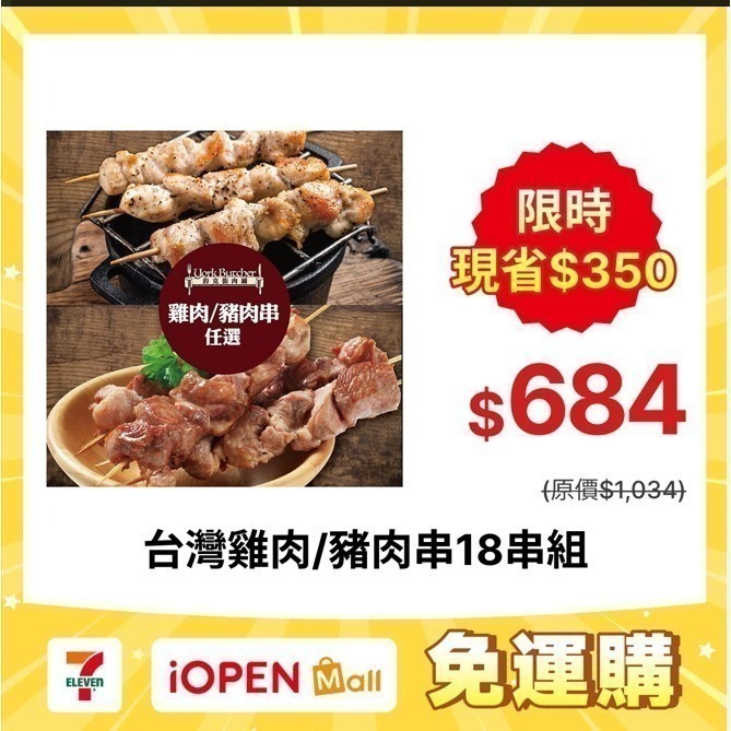 內容量 ( g/ml ) 雞肉串(40g±10%/串/3串1包)、豬肉串(50g±10%/串/3串1包)