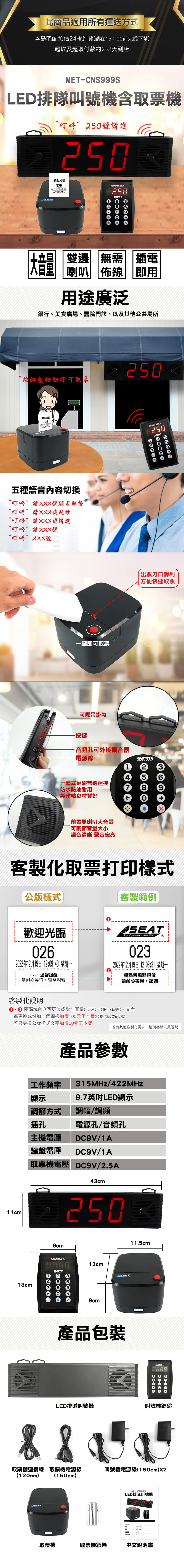 產品名稱: MET-CNS999S_LED排隊叫號機+取票機(附轉印紙)