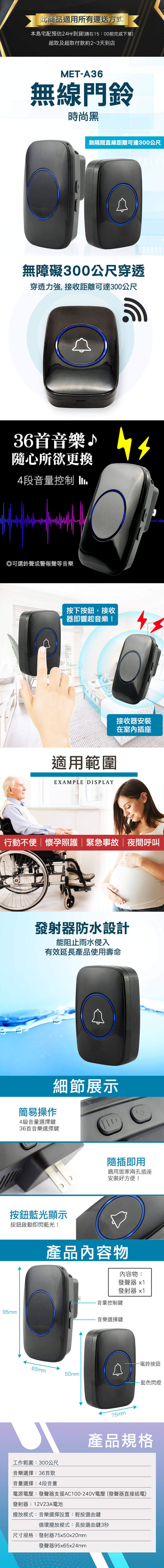 產品名稱:MET-A36_無線門鈴(距離300公尺)