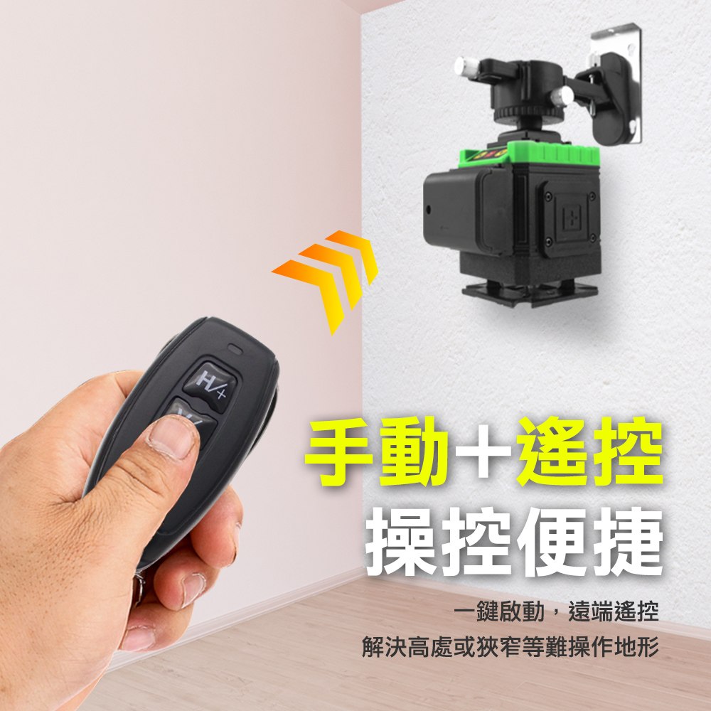 3D雷射地面牆面水平儀,可分別或同時發出自動平衡可見雷射水平、垂直線,為室內或室外施工放樣或校準提供了精準的水平、垂直基準線、操作方便、用途廣泛。適用於掛畫、裝潢、木工、貼磁磚、畫直線..等需要水平垂直測量。