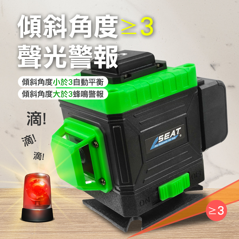 -自動水平,傾斜超過3°,則發聲提示,小於3°,則自動平衡。