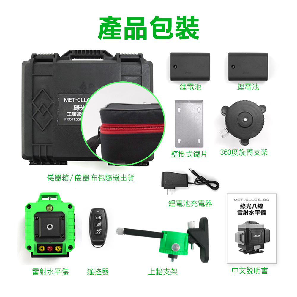 產品名稱:MET-CLLGS-8_綠光八線雷射水平儀(標準/簡配/標配/豪華/頂級型)