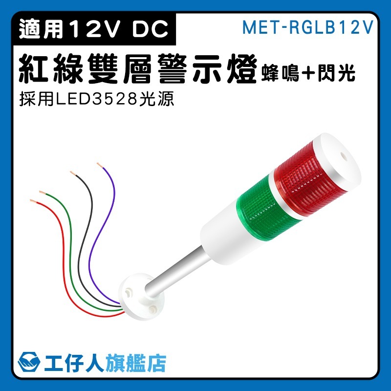 工仔人 12V 紅綠雙層警示燈 安全警示 信號燈 燈棒 特殊照明燈 閃爍警示燈 聲光報警器 交通警示燈 RGLB12V