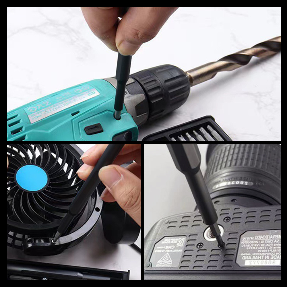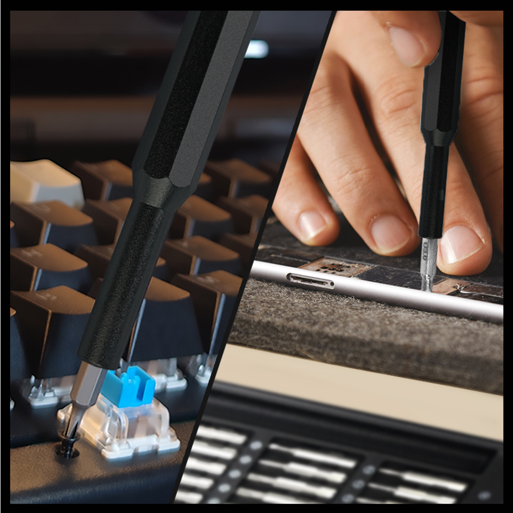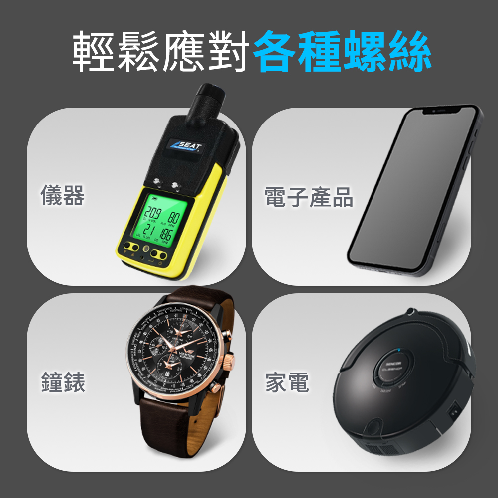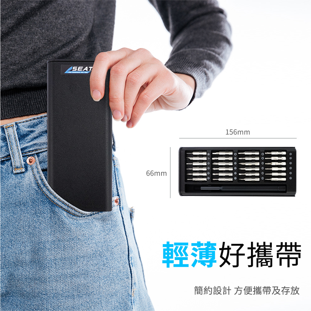 總共有24個螺絲起子頭加一支螺絲起子手柄,符合各種產品螺絲需求。手把前端具有磁力,可吸附住刀頭,使其不易掉落。刀頭採用鉻釩鋼製造,性能出眾,外殼全部採用工程環保塑膠,防摔性能強,外型輕薄好攜帶。