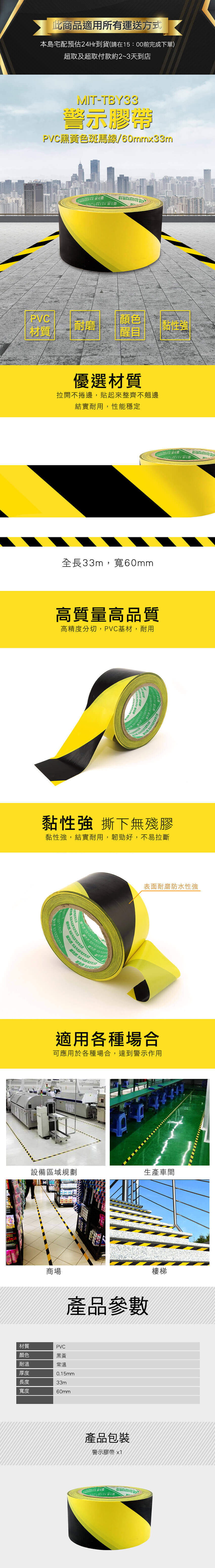 產品名稱:MIT-TBY33_警示膠帶PVC黑黃色斑馬線(寬6公分)
