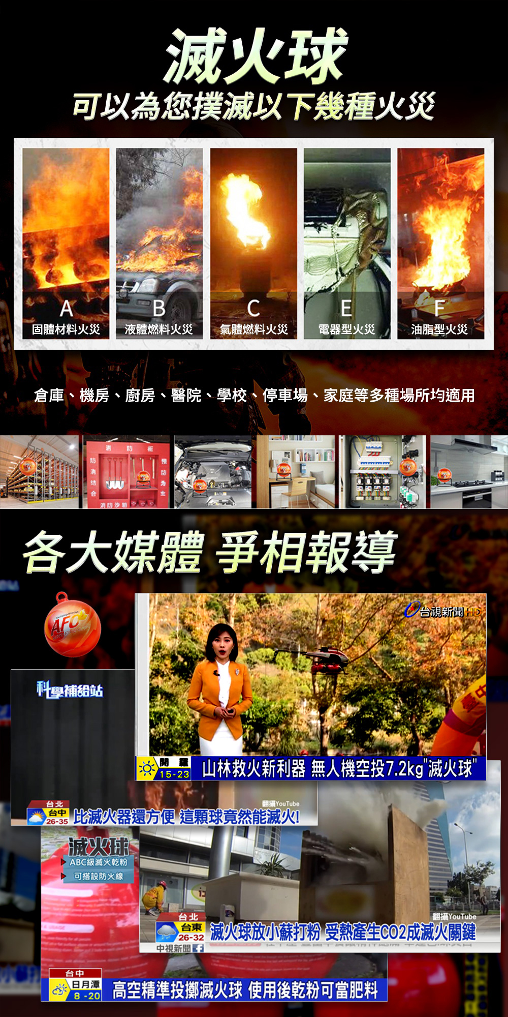 -可事前安裝在易起火處,也可以火災當下投擲使用。