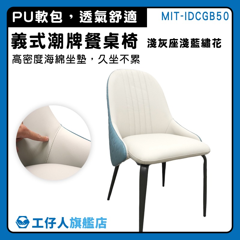 MIT-IDCGB50_義式潮牌餐桌椅(淺灰座淺藍繡花)