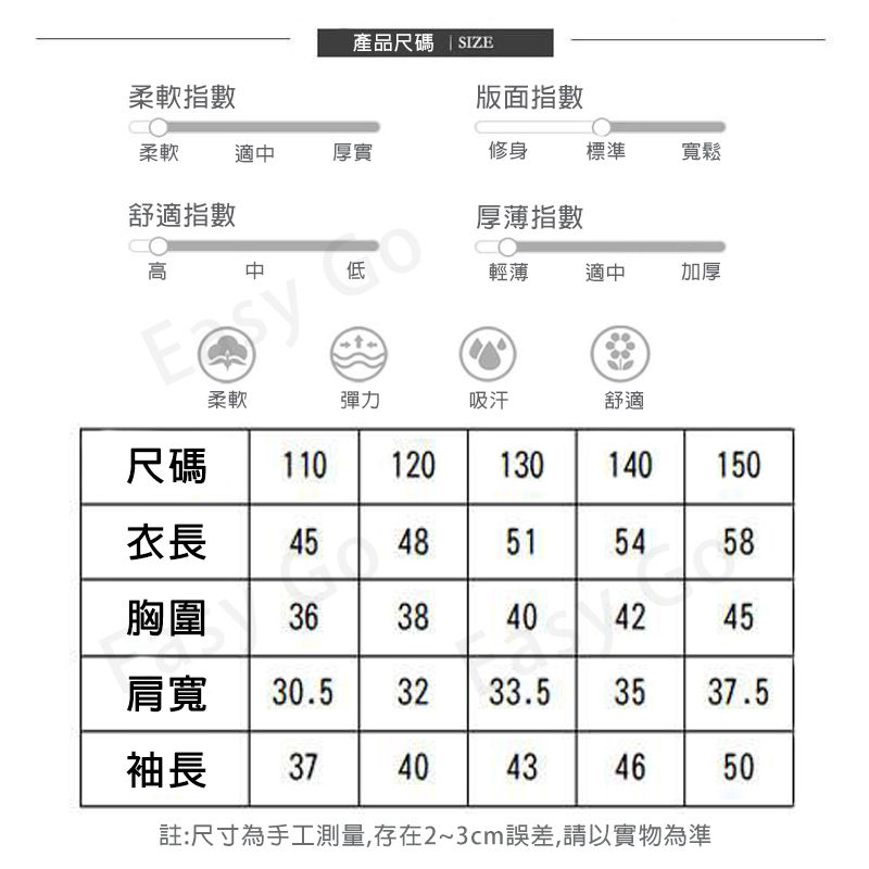 尺寸:110-150 (詳情請見尺寸表,以胸圍及衣長為依據)