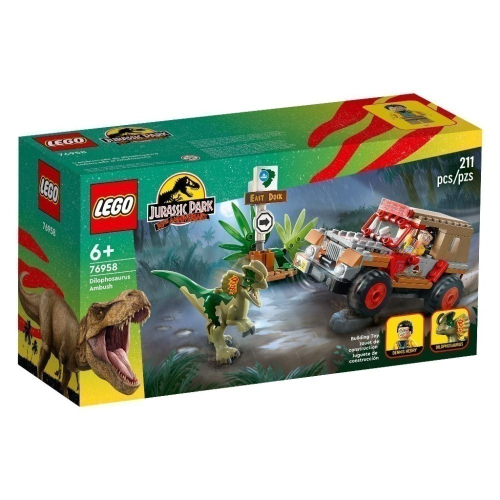 • 恐龍與汽車玩具盒組-用這款樂高® 侏羅紀世界 Dilophosaurus Ambush​(76958)拼砌盒組,激勵孩子重現令人難忘的《侏羅紀公園》場景與編織自己的故事