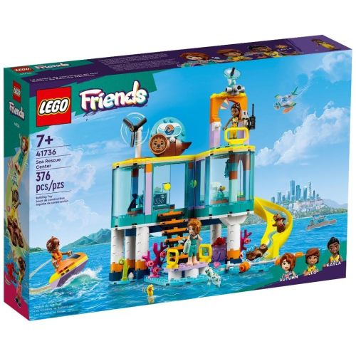7 歲以上、喜愛動物的孩子可用這款 LEGO® Friends 海上救援中心(41736)玩具上演海洋故事。此盒組內有 3 個樂高娃娃與 2 隻海獺、1 隻海馬和 1 隻海龜,此外還有多種配件,可激發扮演遊戲的靈感。孩子可使用水上摩托車,停在碼頭,接著走進裡面為海獺清潔身體、照 X 光、餵牠們吃東西。然後他們可幫海獺溜到復健區裡。海獺恢復健康後,就可以游回大海了。配件包括救生衣、奶瓶、對講機、寶箱、相機、電腦、顯微鏡、注射器與 X 光機。
