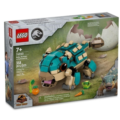 用 Baby Bumpy: Ankylosaurus(76962)恐龍玩具激發電視影集《白堊冒險營》粉絲的靈感,這款模型充滿遊戲與展示冒險可能性。7 歲以上小小恐龍照顧者可先拼砌這款樂高® 侏羅紀世界盒組,接著展開遊戲,開始跟小鼓一起探索世界。此恐龍拼砌冒險盒組的玩偶包含可打開的下顎、頭部左右移動時會搖來搖去的鉸接式尾巴、鉸接式腿部,並配有一些蔬菜。遊戲結束後,在架上或桌上以不同的動態姿勢展示這款逗趣的恐龍好禮。
