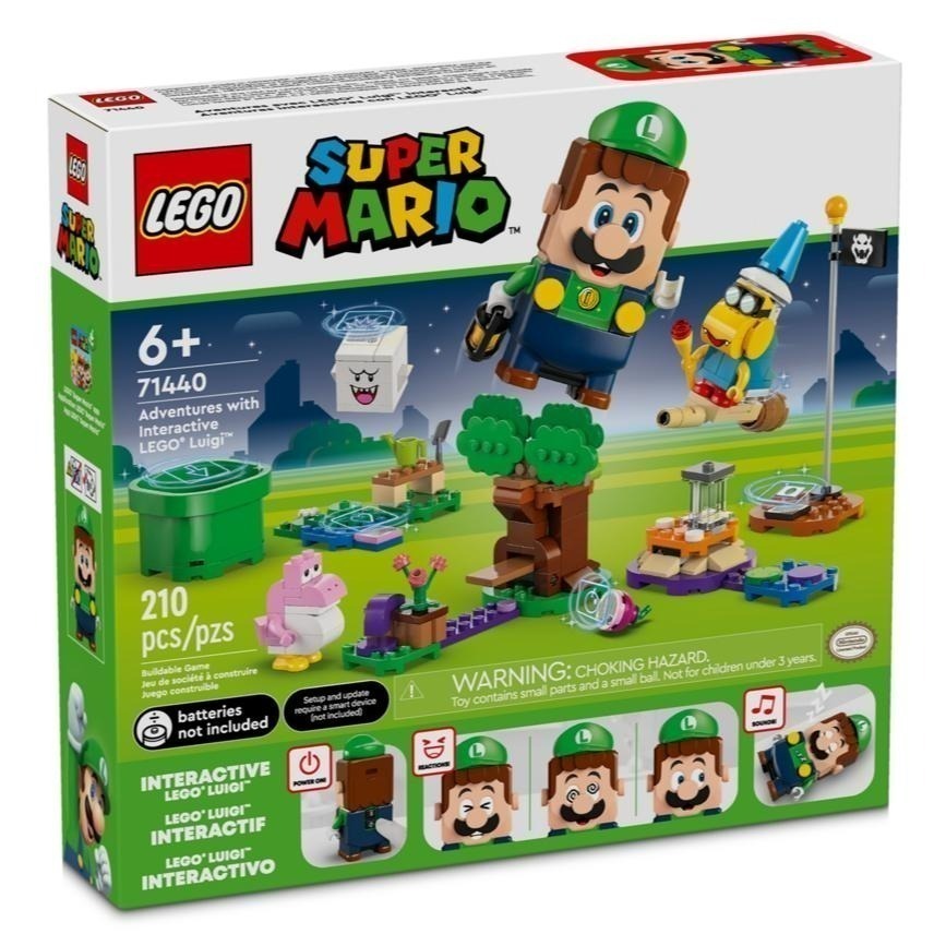 在這款樂高® 超級瑪利歐™ 兒童玩具盒組(71440)中,跟樂高® 路易吉™ 互動式玩偶一起享受好玩的花園探索冒險!此盒組是適合 6 歲以上男孩、女孩與電動玩家的任天堂® 好禮,內有樂高路易吉互動式玩偶,以及卡美克、小耀西和害羞幽靈。從起點水管開始闖關,經過 3 個花園模型,前往終點旗杆,沿途觸發樂高路易吉的數位反應與收集金幣。跟小耀西打招呼,拿些工具。打敗躲在樹上的害羞幽靈並「吃掉」水果。重踩蘑菇地形,讓卡美克掉下來,然後騎著卡美克的掃帚飛走。