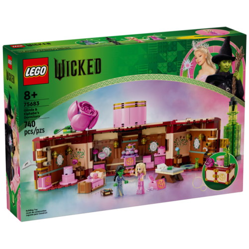 此模型玩具由美麗的拼砌式旅行箱組成,打開後會變成精緻的娃娃屋盒組,呈現女孩們在希茲大學的寢室。這款玩具娃娃屋盒組有許多忠實還原的配件,讓孩子重現格琳達保證要將艾法芭變得「人見人愛」的場景。就像在電影中一樣,2 個樂高娃娃身穿睡衣,但也配有 2 套白天的服裝,增添裝扮樂趣。