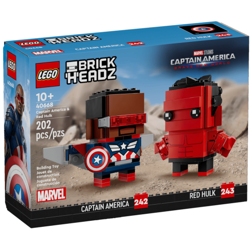 • 適合孩子的超級英雄角色-10 歲以上男孩與女孩和漫威影業《Captain America: Brave New World》的粉絲能以多采多姿的 BrickHeadz™ 風格生動重現美國隊長與紅浩克
