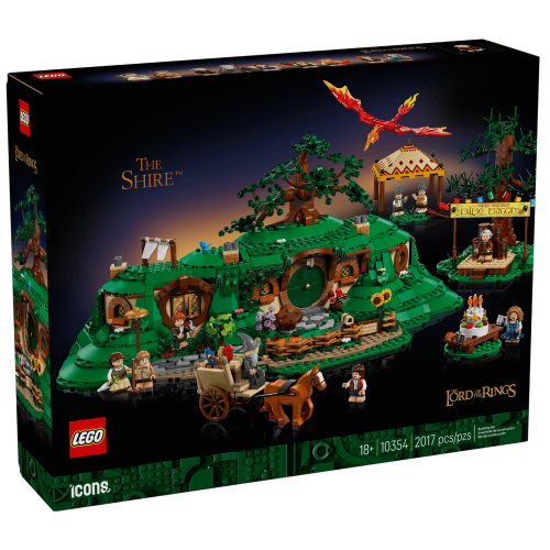 • 盒裡有什麼?-拼砌樂高® 夏爾™ 模型的所有必需品,以及比爾博巴金斯™、佛羅多™、傲腳太太(Mrs. Proudfoot)、農夫傲腳(Farmer Proudfoot)、梅里、皮聘、小玫、山姆衛斯™ 與灰袍甘道夫™ 人偶