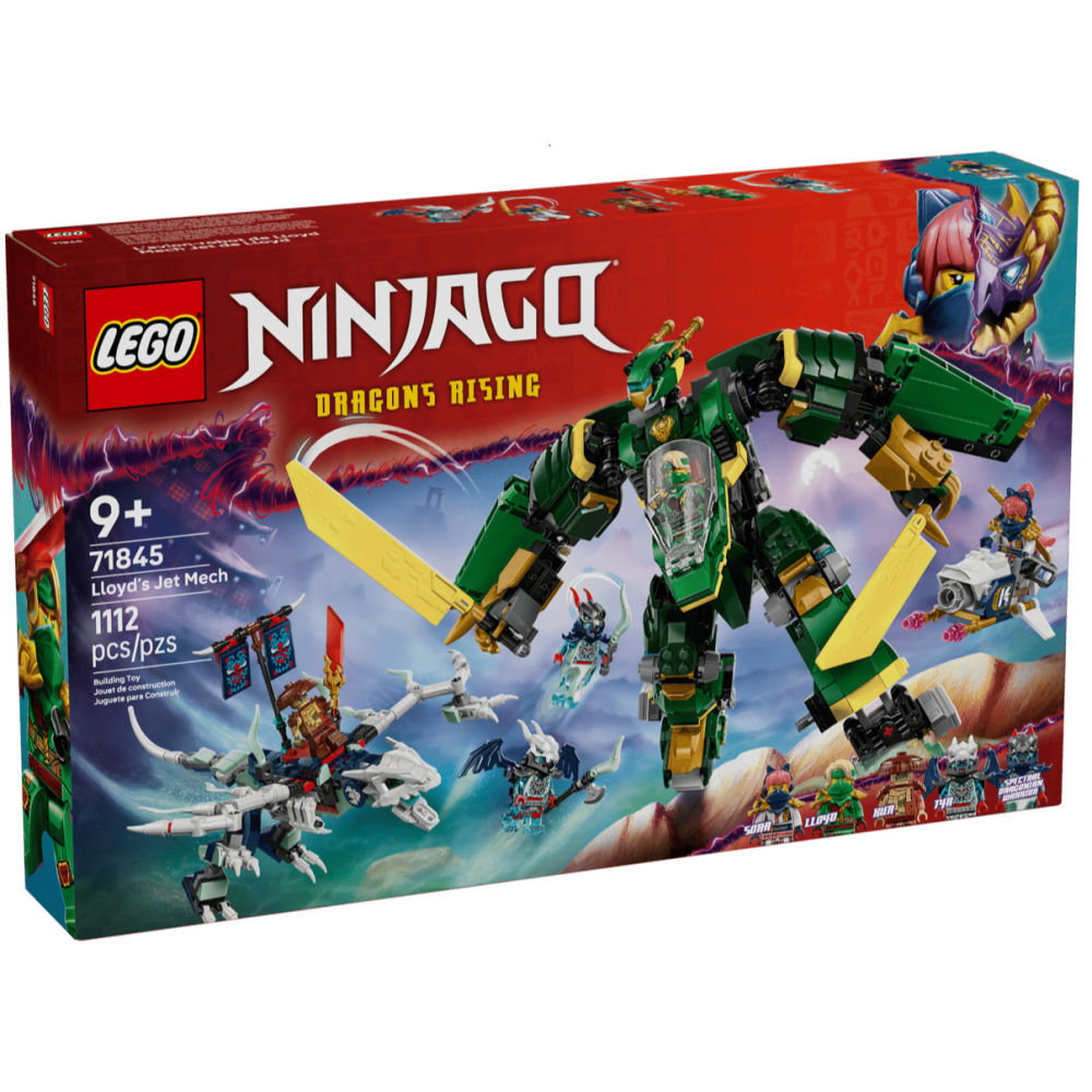 勞埃德的噴射機機械人(71845)忍者玩具拼砌盒組讓 9 歲以上男孩與女孩在空中和地面享受忍者冒險與戰鬥,重現電視影集《旋風忍者®:猛龍崛起》第 3 季的精采場景。