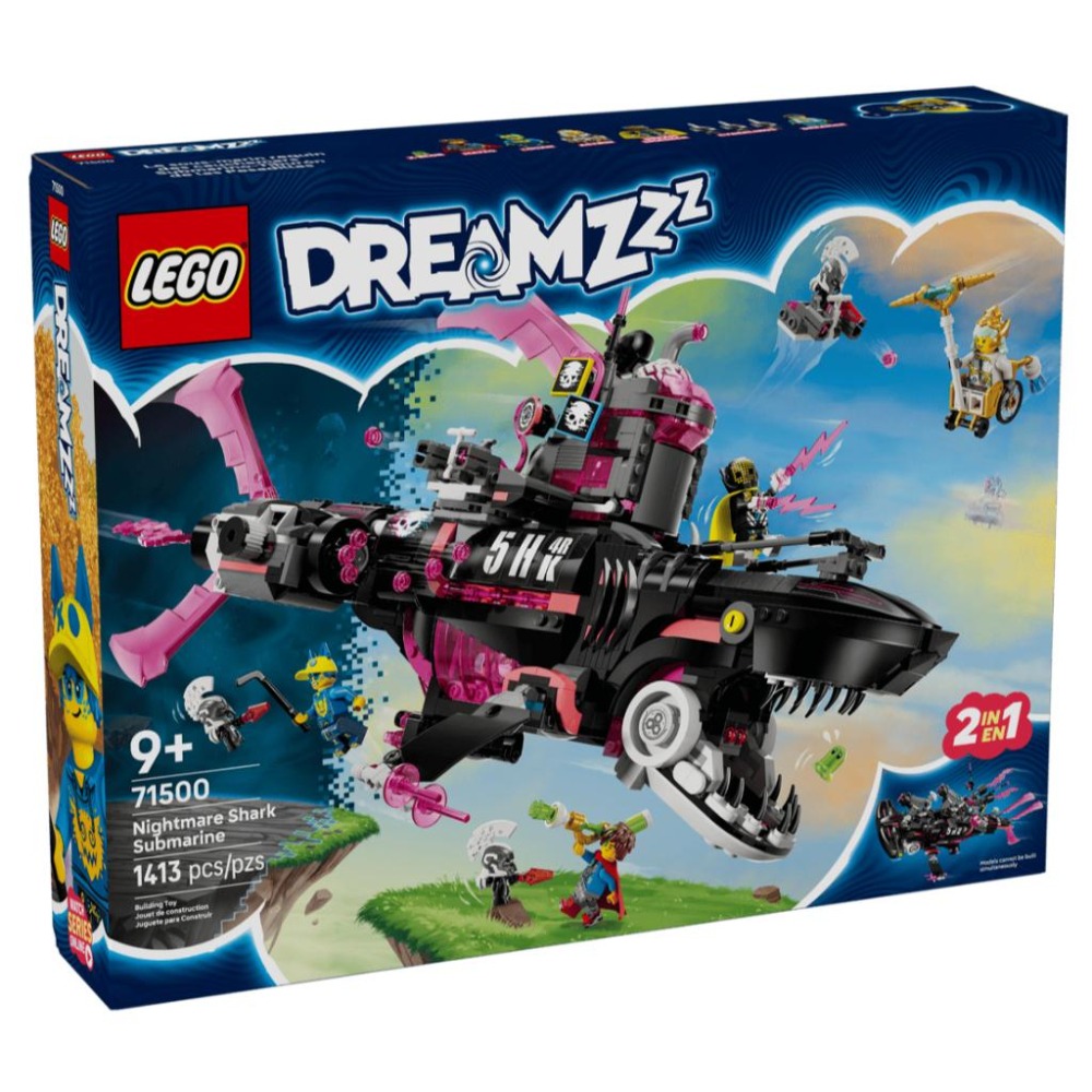 • 船隻玩具-讓想像力隨著這款適合 9 歲以上孩子的 LEGO® DREAMZzz™ 惡夢鯊魚潛水艇拼砌盒組啟航,其中包含 2 種拼砌選擇