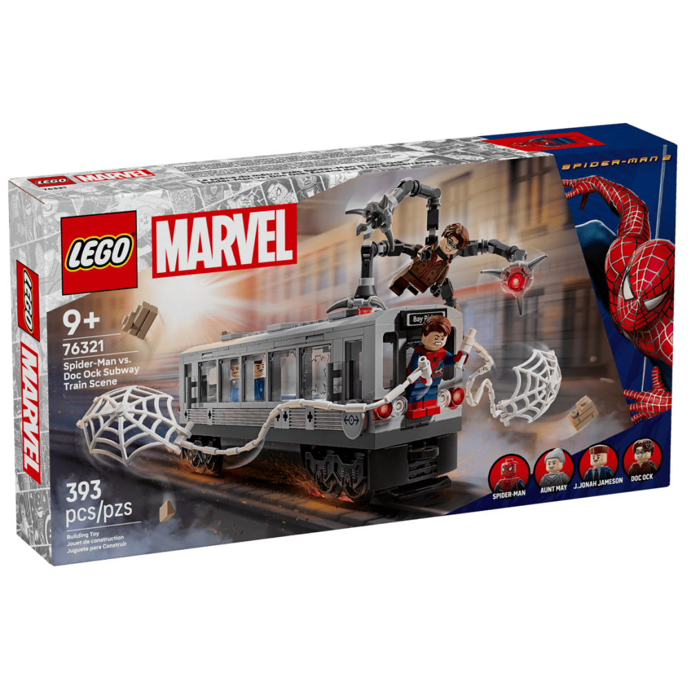 這款超級英雄地鐵列車拼砌盒組根據漫威影業電影《蜘蛛人 2》的經典場景設計,配有 4 隻人偶:J.喬納詹姆森、梅嬸、蜘蛛人和八爪博士。蜘蛛人人偶有可互換的頭部-蒙面與未蒙面-以及可固定到列車上的大型蛛網。八爪博士人偶有 4 隻裝有活動關節的觸手,其中 2 隻有「雷射光束」零件、2 隻有可固定到列車上的夾子。車頂可掀起,便於進入列車內部,裡面有空間讓人偶乘客乘坐。如要增添數位樂趣,拼砌者可使用直觀的 LEGO Builder 應用程式,放大、旋轉 3D 模型和追蹤進度。內含 393 個零件。