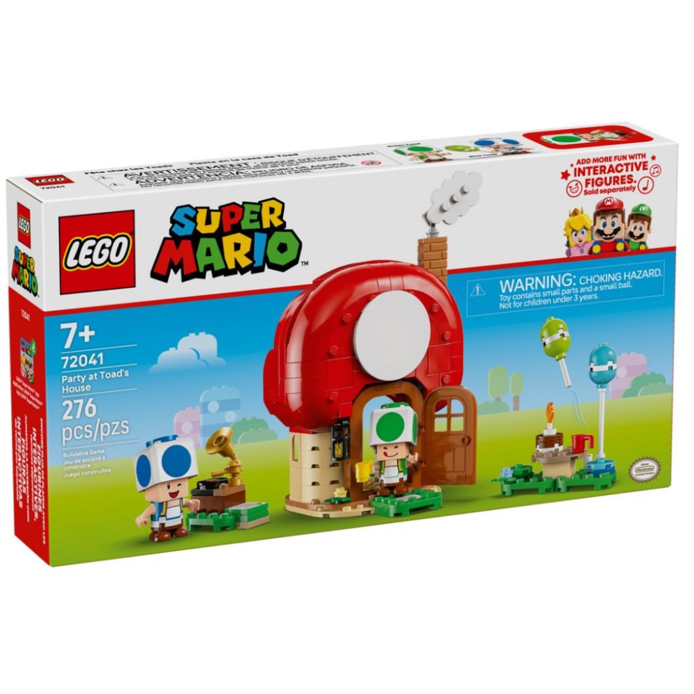 用這款超棒的樂高® 超級瑪利歐™ 兒童玩具盒組(72041)暢玩角色扮演,在奇諾比奧之家舉辦派對。此盒組是適合 7 歲以上男孩、女孩與粉絲的絕佳小型玩具禮品,內有精緻的奇諾比奧之家,設有廚房和臥室(牆上有碧姬城堡畫作),並配有可拆卸的家具,便於遊玩。屋外有野餐桌,設有內附藍色奇諾比奧與綠色奇諾比奧玩偶的座位,此外還有轉盤可旋轉的拼砌式留聲機和派對配件。 將樂高® 瑪利歐™、樂高® 路易吉™ 或樂高® 碧姬™ 玩偶(出自盒組 71439、71440、71441 或 72043,另售)加入這款拼砌玩具,享受數位互動式遊戲,包括踩上留聲機的指令積木時會播放歌曲,以及站在房屋門前台階時會響起門鈴聲。 在盒裡或 LEGO Super Mario 應用程式中找到此任天堂® 樂高盒組的拼砌說明,也請瀏覽其他樂高超級瑪利歐系列盒組(另售)。這款盒組包含 276 個零件。