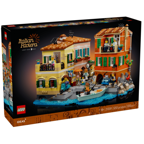 透過這款給大人的 LEGO® Ideas 建築模型組合(21359)讚頌義大利里維埃拉歷久不衰的美。此展示模型是一款迷人的義大利主題好禮,適合樂高收藏家與熱愛旅行、建築和歷史的玩家,刻劃了典型利古里亞漁村的寧靜氛圍、鮮明色彩與細膩的建築細節。