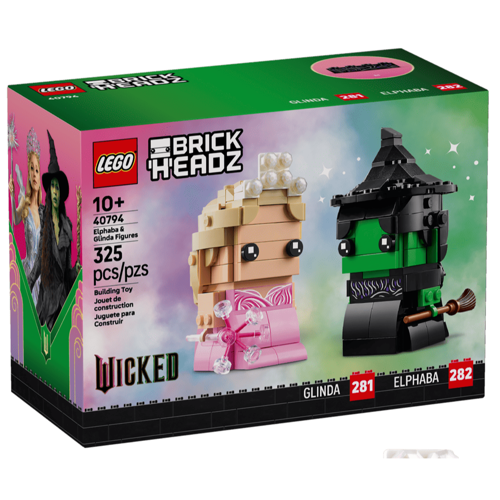 送出 LEGO® BrickHeadz™ 艾法芭和格琳達玩偶(40794),給《魔法壞女巫》粉絲一份充滿神奇創意的好禮。2 個忠實還原的精緻角色無論是拼砌、遊玩或擺出來展示,讓大家欣賞,都充滿樂趣。這些 BrickHeadz 角色配有堅固底板,是《魔法壞女巫》周邊收藏的絕佳新成員,與其他 BrickHeadz 系列玩偶(另售)一起展示也很好看。