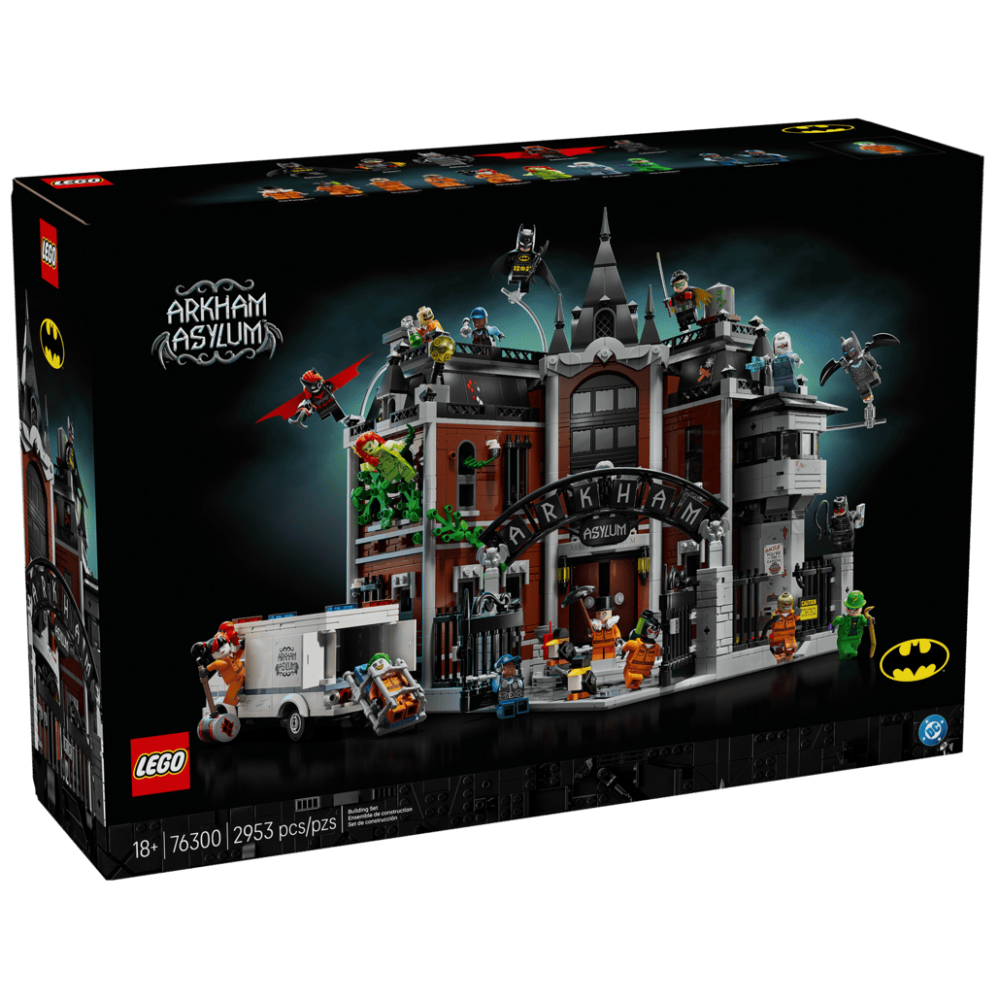 這款模組化拼砌盒組配有 16 隻樂高人偶:蝙蝠俠、蝙蝠女俠™、蝠翼™、羅賓™、急凍人™、謎語人™、毒藤女™、貓女™、稻草人™、小丑女™、班恩™、小丑™、企鵝人™、殺手鱷™ 與 2 個警衛。模型可分為 3 區-一樓、二樓和屋頂-可拆卸的零件讓玩家能進入內部。附加特色包括囚車、可打開的牢房,以及 65 張與蝙蝠俠世界觀有關的貼紙。每區均裝在 24 袋的其中一袋,非常適合用來當作蝙蝠俠倒數月曆。