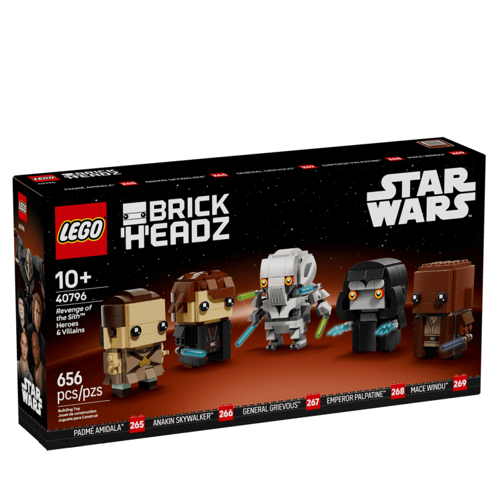 • 積木組成的星際大戰™ 模型組合-拼砌這款英雄與反派盒組,以 LEGO® BrickHeadz™ 風格紀念《星際大戰三部曲:西斯大帝的復仇™》科幻冒險 20 週年