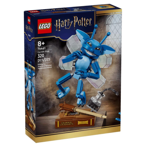 • 尺寸-這款 320 片裝的盒組中,康瓦耳郡綠仙玩偶擺在展示座上立放高逾 24 公分