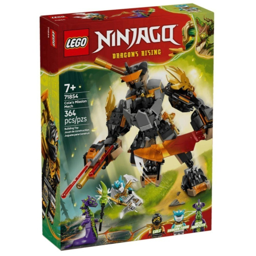 7 歲以上男孩與女孩一定會喜愛拼砌這款樂高® 旋風忍者® 阿剛的任務機械人和龍形冰忍(71854)忍者玩具,重現電視影集《旋風忍者:猛龍崛起》第 4 季的場景。此盒組包含機械人玩具,配備可動的頭、手臂、肩甲、手指、腿和腳踝,還有可放進 1 隻人偶的駕駛艙。 機械人附 3 種武器:劍、長棍,以及含 2 支飛鏢的彈簧式射擊砲,孩子可用這些武器替換忍者龍阿隆之戰(71855)盒組(另售)裡的武器。這款旋風忍者玩具還配有 3 隻含配件的人偶:附鎚子的阿剛、附劍的龍形冰忍,以及附法杖的強酸怪,可用於角色扮演戰鬥。 樂高旋風忍者系列兒童拼砌盒組包含機械人、龍和寺廟,讓粉絲享受忍者動作冒險。孩子可使用 LEGO Builder 應用程式自信拼砌每款盒組-用容易理解的數位拼砌說明縮放、旋轉 3D 模型與追蹤進度。此盒組包含 364 個零件。