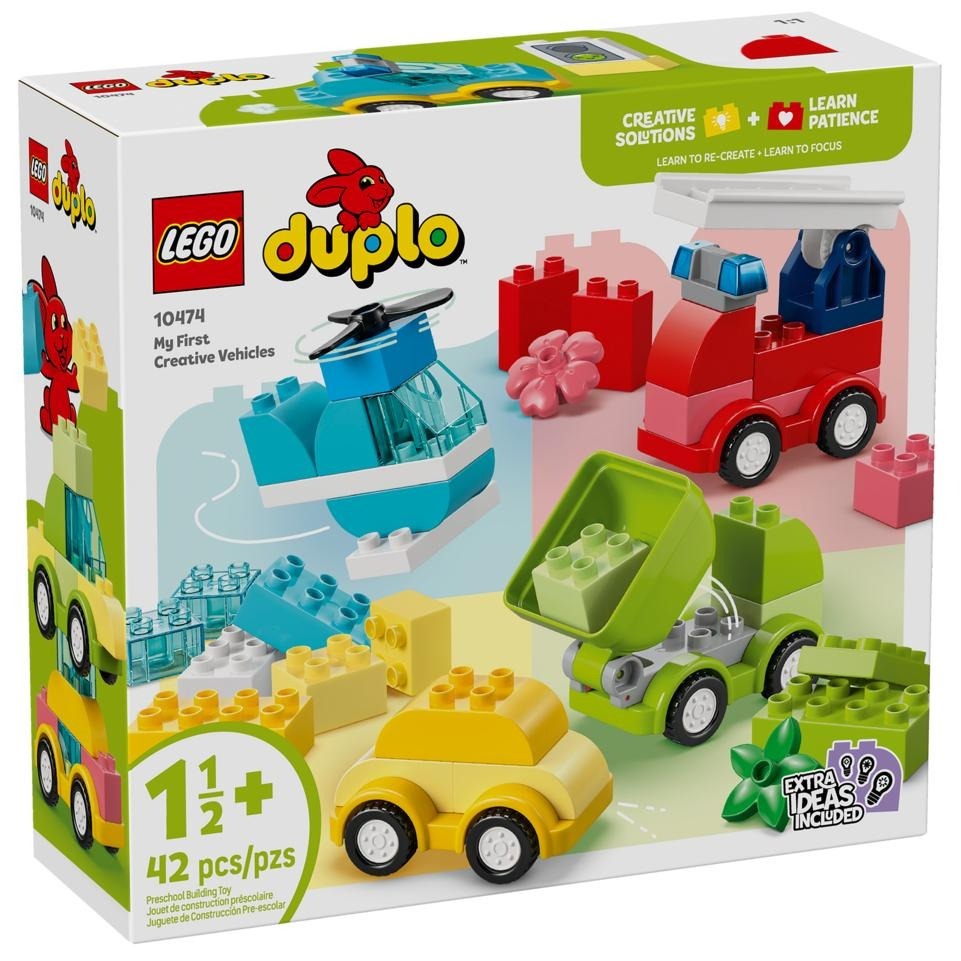 為小寶貝送上樂高® 得寶® 我的第一組創意交通工具(10474)玩具,將自由不受限的創意交到他們手中。此幼兒學習玩具適合 18 個月大以上女孩與男孩,包含許多積木、零件和可動功能,一定會讓小寶貝的創意之輪轉個不停!