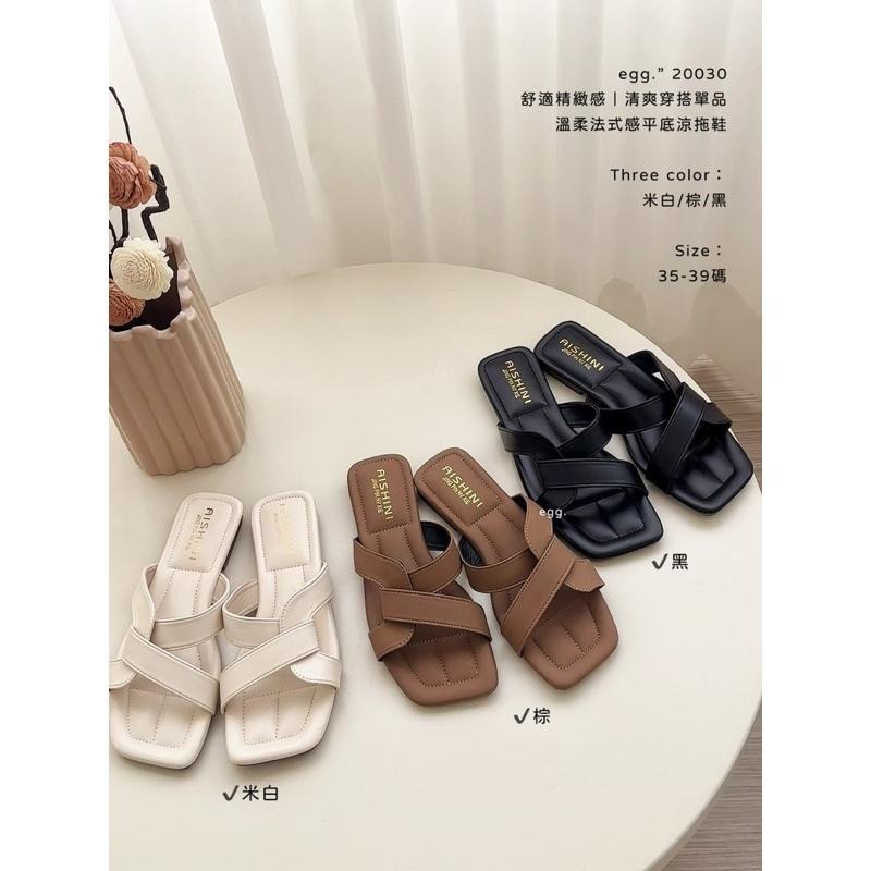 egg.” 20030 舒適精緻感|清爽穿搭單品 溫柔法式感平底涼拖鞋