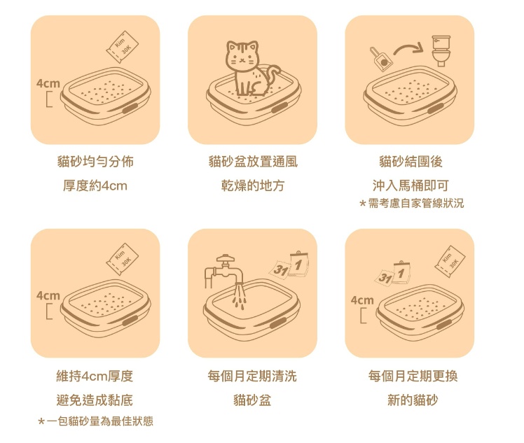 🔴定期維持4cm厚度讓貓咪挖砂避免太淺造成黏底