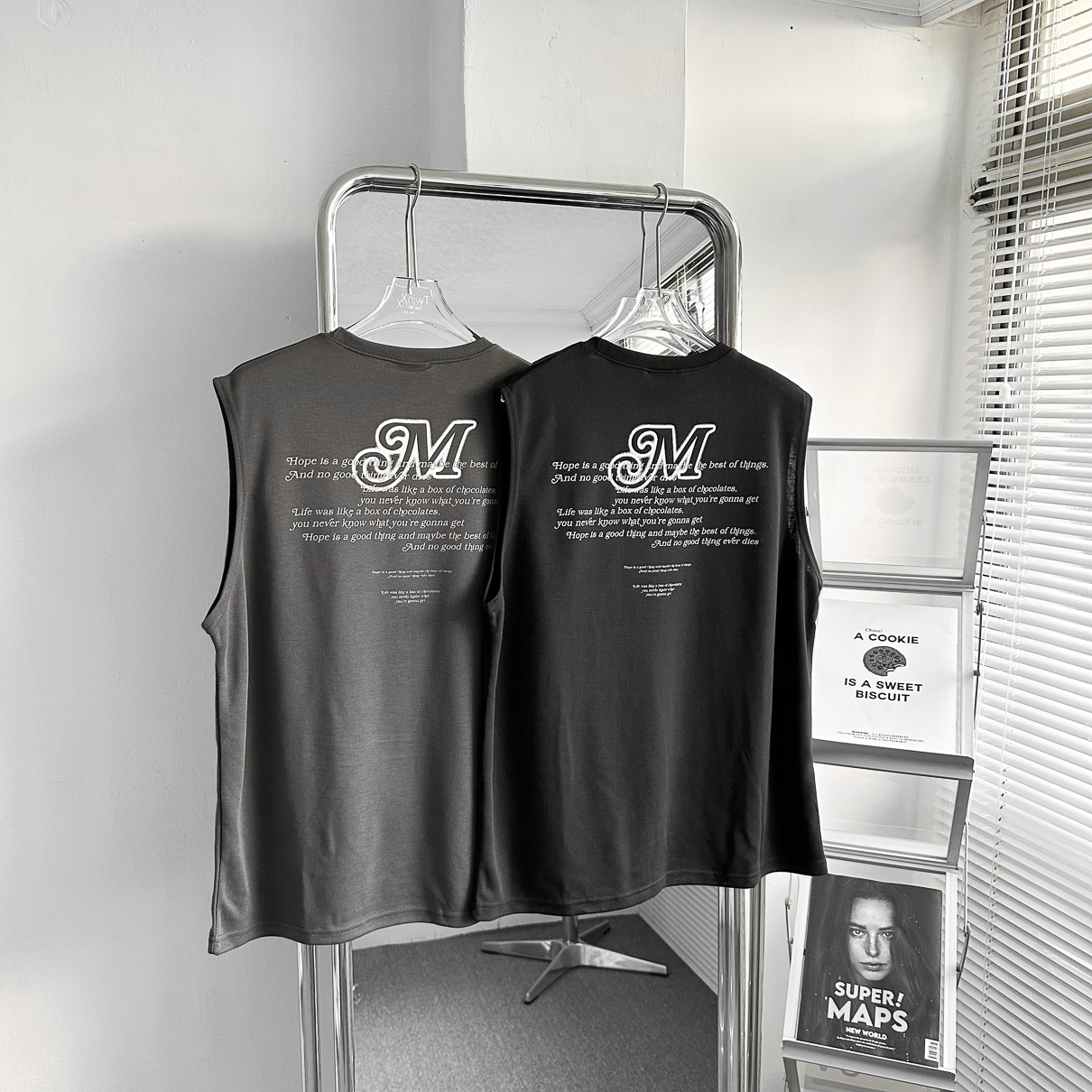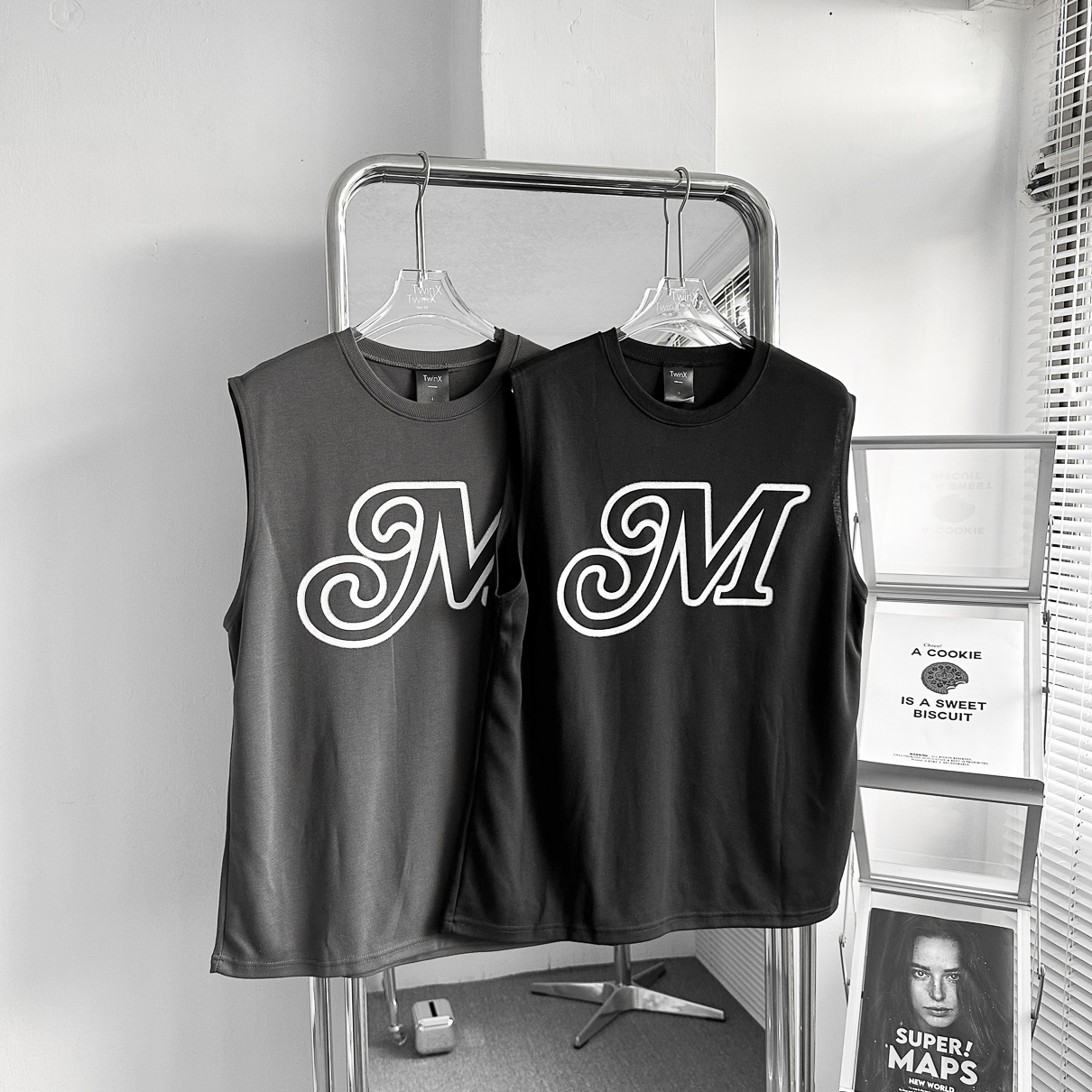 現貨【DOUBLE4】韓國 復古 M 前後字母 個性 男女 無袖背心 厚磅 暗黑 韓系背心 健身背心 運動背心 2370