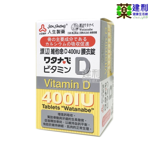 人生製藥 渡邊 人生維他命D 400IU 膜衣錠 維生素D3 -建利健康生活網